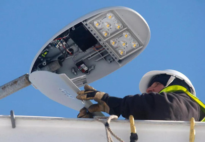 在底特律安装新的LED路灯.Rebecca Cook / Reuters